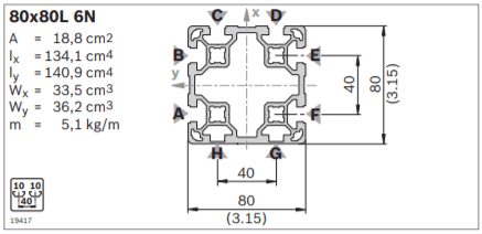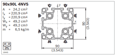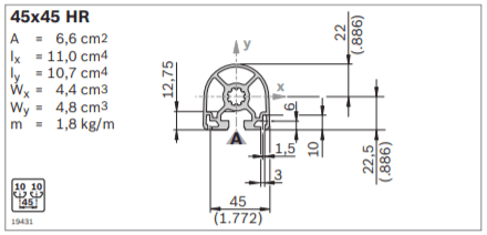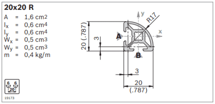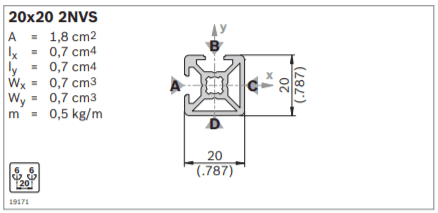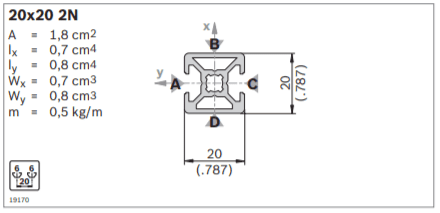 Strut profiles with modular dimensions means that it uses a set measurement for structural design. Bosch Rexroth uses it as the amount of spacing between each slot. So for example, in the figure above, the 6 mm slot, 20 mm Modular Dimension profile has a 20 mm spacing between each slots. Bosch Rexroth provides six different profile ranges: