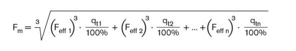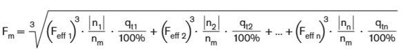 Fm= equivalent dynamic axial load (N) Feff1…Feffn= effective load during phase 1…n (N)