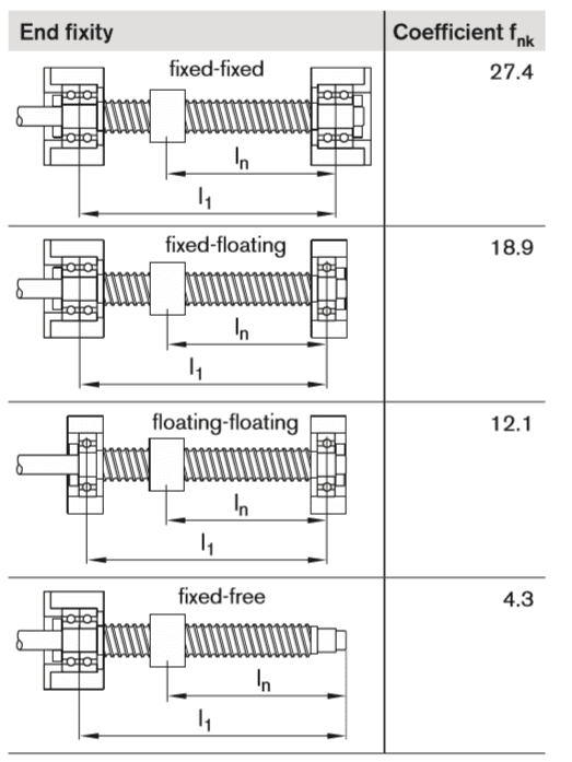4. Calculate the Critical Speed (LMT Handbook Section 5.1.3.3) Critical speed is the lowest rotational speed at which the Ball Screw is equivalent to its first order frequency, resonance. The critical speed depends on the end bearings, the diameter of the screw’s core, and the critical screw length.