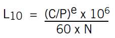 - e = 3.0 for ball bearings, 10/3 for roller bearings