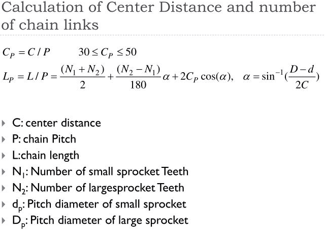 The chain length is given by the number of chain links and chain pitch.