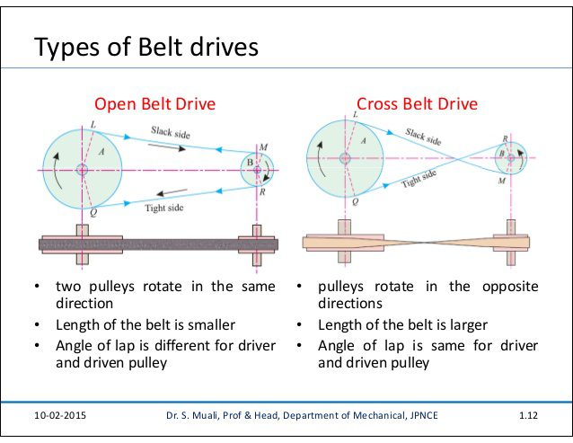 Belt drives are divided into two type open belt drive and cross belt drive as shown in the picture bellow: