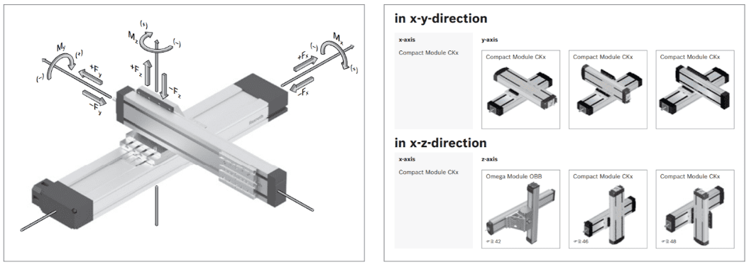 - Bosch Rexroth linear motion systems can be used in any orientation but defining this will be helpful in force calculations and selecting the right type of connection kit.