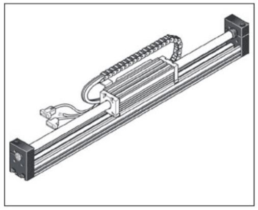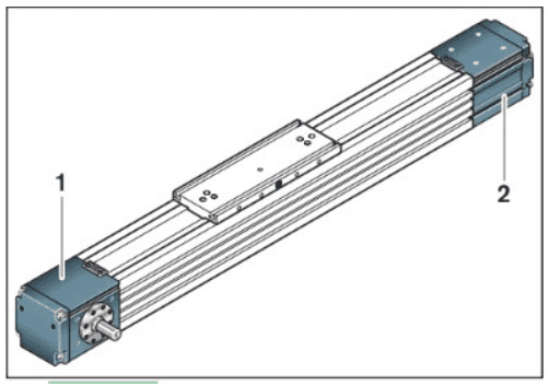 Linear Motor End Enclosures. (BOSCH, 2007). The end blocks that come with linear motors serve as both end covers for the frame and as stops to prevent the carriage from overshooting. Unlike end blocks for toothed belt drives or ball screw drives, these end blocks do not have a shaft, as the thrust for the carriage is directly generated at the carriage.