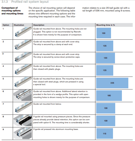 Mounting of profile rails is very important as this will greatly affect the performance of the product. Different mounting techniques, products, and time to mount rails are defined in this section.