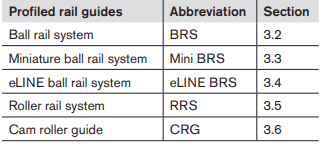 will be restricted at the outset when modifying existing designs. Also, some types of guide are more commonly used in certain sectors and applications than in others. Another point to be considered at an early stage is the level of accuracy required, as this may eliminate some versions in the first place. It is therefore advisable to run through all the steps once to gain a better idea of the possible options before proceeding to select the product and perform the nominal life calculations.