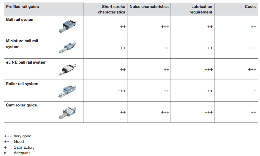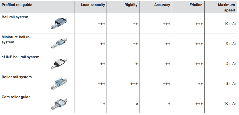 Profile Rail Sizes, Runner Block Designs, and System Characteristics