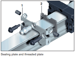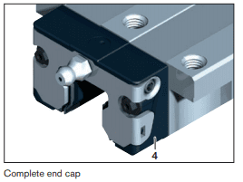 End cap- The end cap (4) consists of the recirculation plate (6), the lubrication insert (7), the ball guide (5), the sealing plate, and the threaded plate.