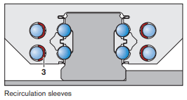 block body is lined with a sleeve (3). This sleeve ensures good, low-friction recirculation of the balls inside the runner block. It also acts as a guide for the optional ball chain.